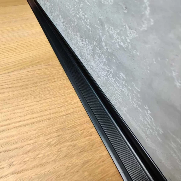 Наш мінімалістичний алюмінієвий плінтус поєднує елегантність із високою міцністю. Він стійкий до впливу вологи, подряпин і сонячного світла, тож чудово підходить для приміщень з високою прохідністю та вологістю — ванних кімнат, коридорів, кухонь тощо.