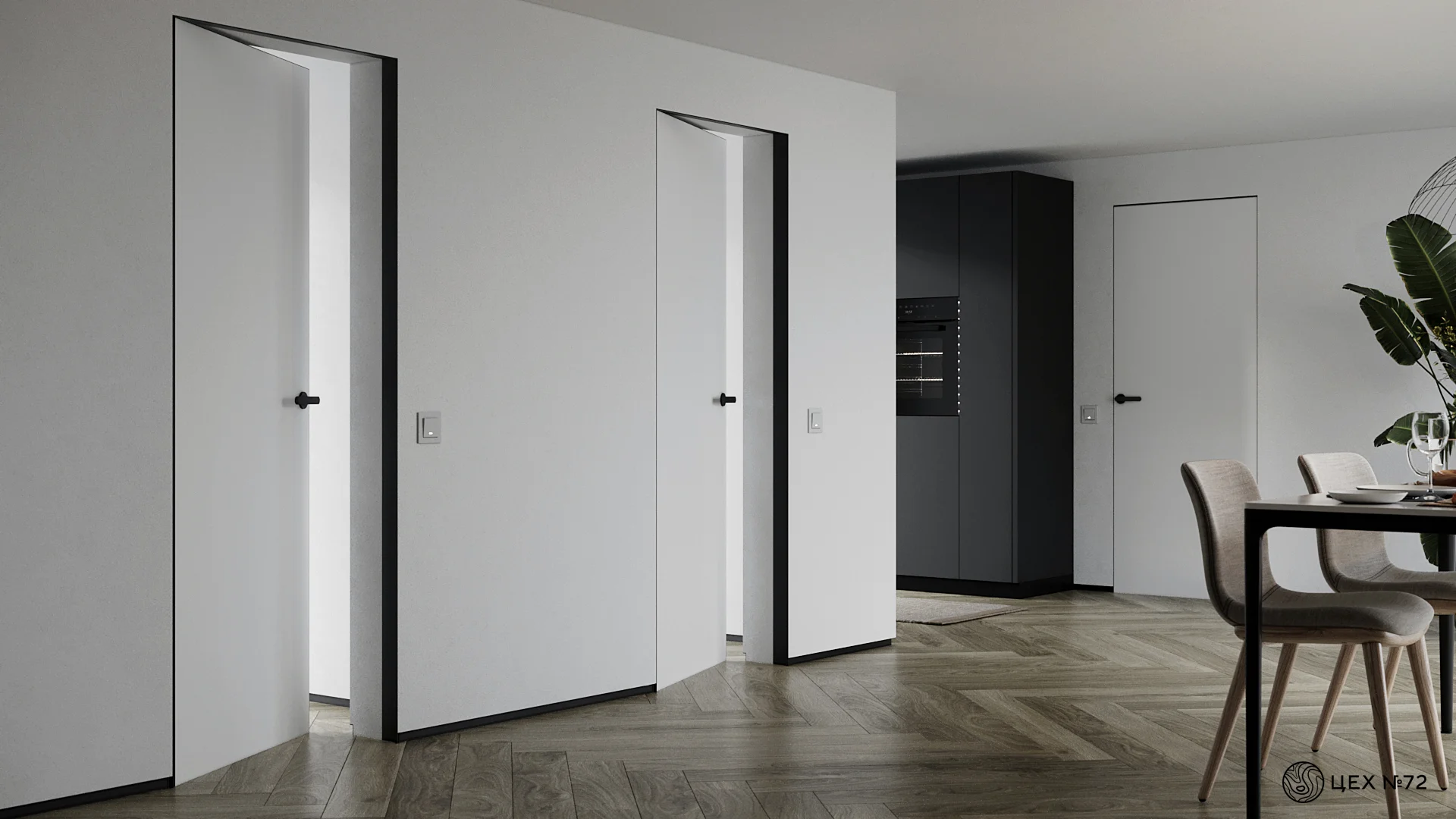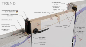 Алюмінієва дверна коробка прихованого монтажу на 2 завіси