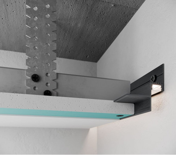 Профіль тіньового шва призначений для простого і швидкого створення тіньового простору (паза) по периметру гіпсокартонних стель. Завдяки особливостям конструкції, стеля не стикається зі стінами, створюючи ефект підвісної стелі (ширяє в повітрі).