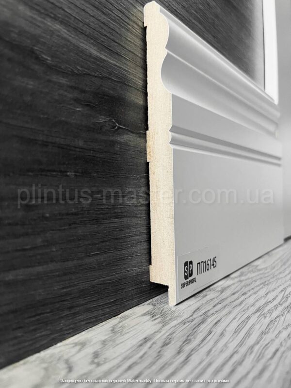 Цей плінтус є прекрасним вибором для тих, хто шукає декоративний елемент з довговічністю та естетичним виглядом за доступною ціною. Він забезпечує чисте та охайне закінчення приміщення, яке виглядає стильно та сучасно. Плінтус МДФ ламінований ПП 16145 може використовуватися окремо або в поєднанні з іншими плінтусами для досягнення більш складних декоративних ефектів.
