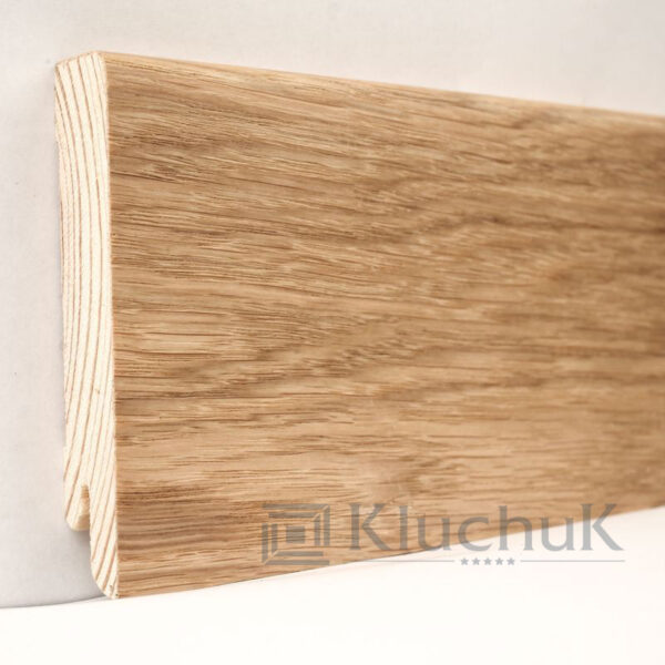 Плінтус Модерн Дуб натуральний – це дерев’яний плінтус з колекції “Модерн”, який виготовляється з дуба в натуральному кольорі. Він має прямокутну форму зі згладженими краями, що створює сучасний та елегантний вигляд. Плінтус має гладку поверхню з легким глянцем, що додає йому стильності та вишуканості.