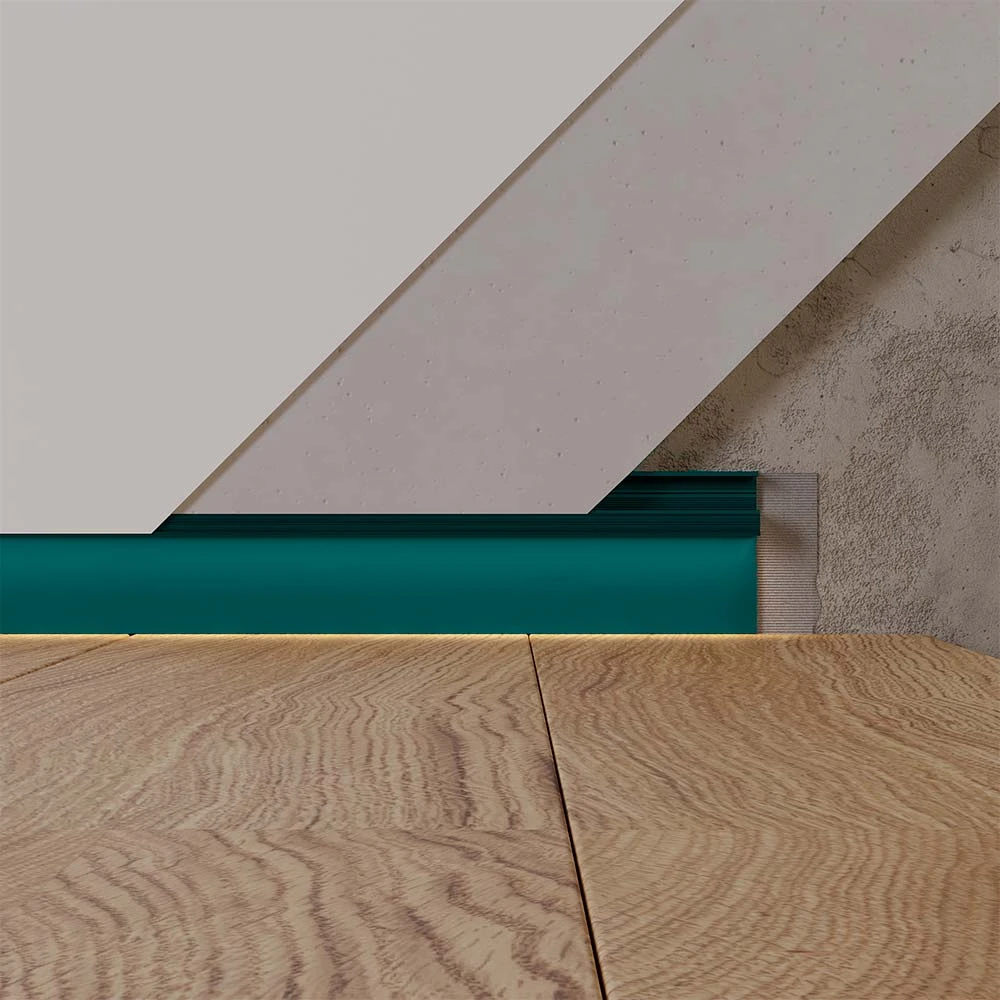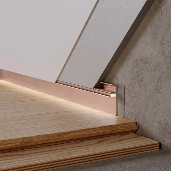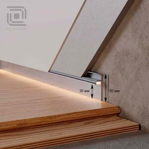 Модель ALU-SL50 — це ідеальне рішення для прихованого плінтуса з можливістю декоративного підсвічування. Він чудово підходить для зон із низьким рівнем освітлення — сходів, коридорів, ванних кімнат. Світлодіодна стрічка вмонтована в профіль створює м’яке фонове світло, яке додає затишку і комфорту в будь-який час доби.