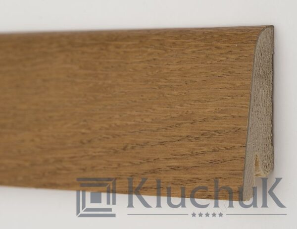 Медовий відтінок дуба додає плінтусу природного та естетичного вигляду, а лакове покриття забезпечує йому міцність та стійкість до вологи та забруднень. Крім того, плінтус має зручну форму, яка дозволяє легко встановлювати його на стіну.