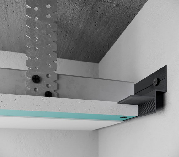 Профіль тіньового шва призначений для простого і швидкого створення тіньового простору (паза) по периметру гіпсокартонних стель. Завдяки особливостям конструкції, стеля не стикається зі стінами, створюючи ефект підвісної стелі (ширяє в повітрі).